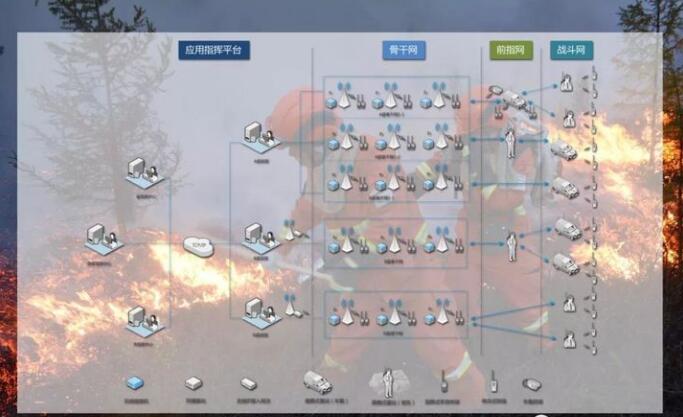 以行政區(qū) (縣)為最小單元格,以固定架設(shè)中繼基站為主、車載移動(dòng)中繼基站為輔,充分考慮森林撲火部(分)隊(duì)的建制特點(diǎn),在滿足平戰(zhàn)結(jié)合要求的同時(shí),突出保障撲火作戰(zhàn)行動(dòng)中的指揮通信需求。各級指揮調(diào)度坐席通過網(wǎng)絡(luò)實(shí)現(xiàn)遠(yuǎn)程與前線火場語音、數(shù)據(jù)互聯(lián)互通。系統(tǒng)指調(diào)平臺(tái)實(shí)時(shí)獲取并顯示終端定位信息,指揮員實(shí)時(shí)掌控火場發(fā)展態(tài)勢,現(xiàn)場兵力部署等動(dòng)態(tài)信息使指揮可視化、扁平化。