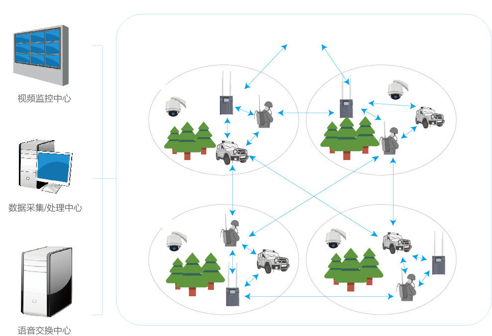北峰無線Mesh自組網系統廣泛應用于:森林防火、反恐維穩、協同作戰、城市綜合聯合救援、邊海邊境防控等領域。