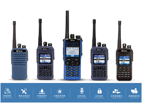 北峰防爆對講機DMR、PDT系列(BF-TD510EX/BF-TD511 EX /BF-TD880 EX /BF-TD950 EX),支持模擬通信功能,可與原有模擬防爆對講機進行通信。產品嚴格按照中國最新防爆電氣標準進行設計并通過本安型IIB級認證,產品具有IP68防塵防水、一鍵報警、衛星定位、全雙工通話、數字錄音等豐富的功能。