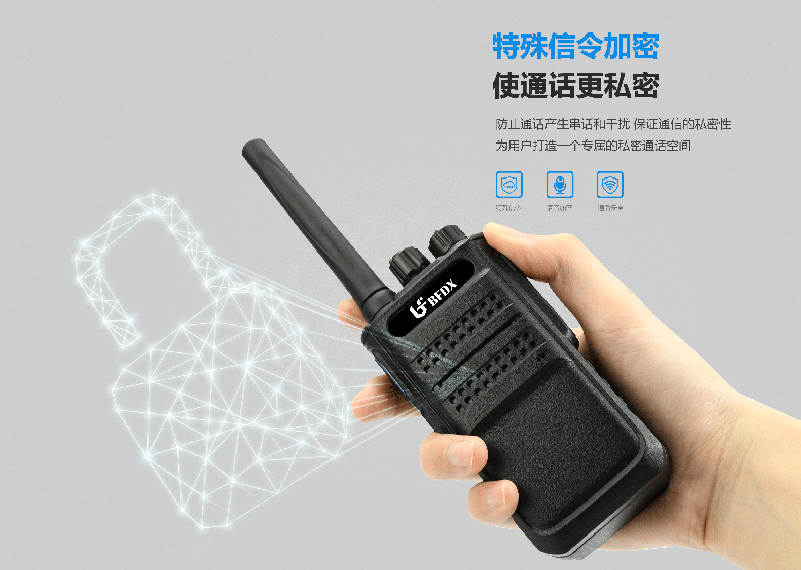 BF-312模擬對講機支持標準或非標亞音下的特殊信令加密,防止通話產生串話和干擾,保證通信的私密性,為用戶打造一個專屬的私密通話空間,讓每次通話難以被監聽,省去特殊行業用戶的后顧之憂。