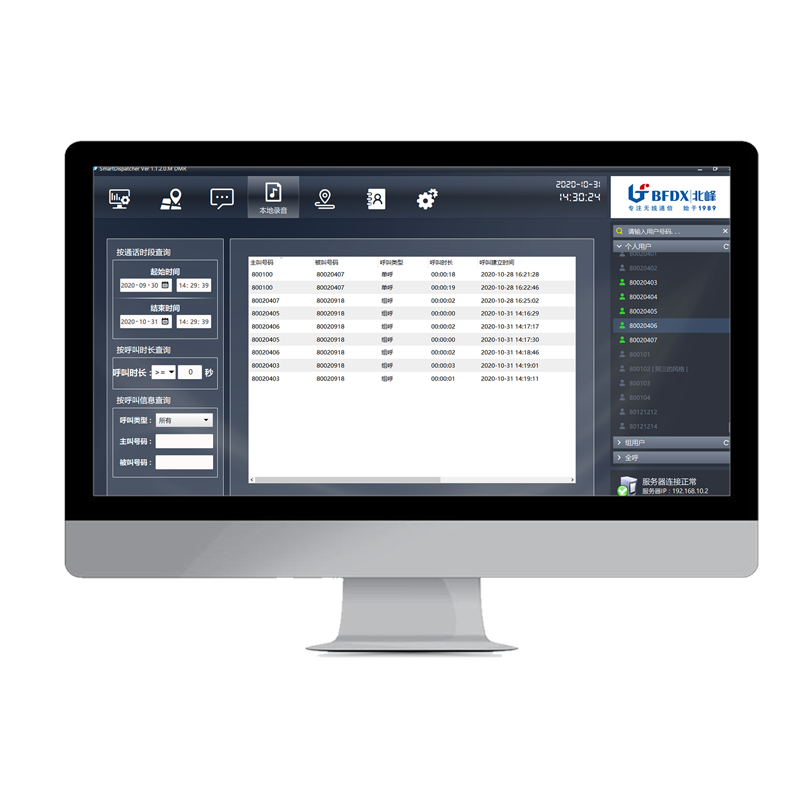 BF-9500綜合調度管理平臺結合國內公共部門及其他部門的需求,能夠完成多路集群對講機或電話實時錄音、錄音回放、配置用戶信息、查詢及導出、日志功能等。