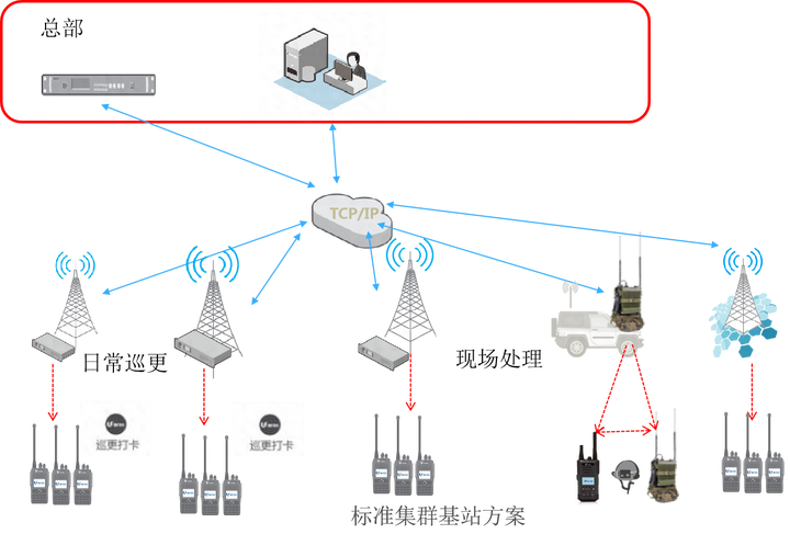用戶通過(guò)終端,接入北峰智能IP互聯(lián)系統(tǒng)(SDC),在SDC系統(tǒng)平臺(tái)下可實(shí)現(xiàn)語(yǔ)音調(diào)度、數(shù)據(jù)調(diào)度、緊急報(bào)警、GIS調(diào)度、巡更打卡、錄音管理、NFC出入門(mén)禁、智能身份識(shí)別等業(yè)務(wù)功能,助力工作人員協(xié)同執(zhí)行多項(xiàng)任務(wù),提升巡更管理效率。